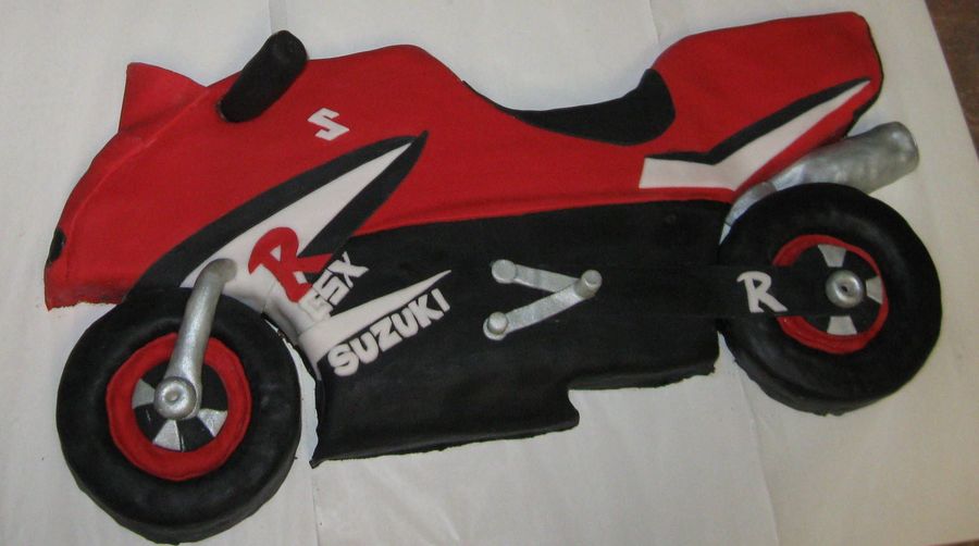 This cake was made to look like the grooms bike, he liked it very much. This picture was taken before I finished the cake, i did clean up those rough edges, i just didnt get a picture afterwards. Special thanks to Mizchris for taking the time to give me tips and answer my questions!