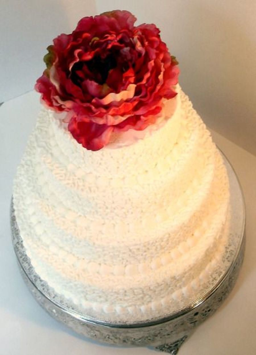I made this to serve at a fundsaiser. All cornelli lace, silk flower.