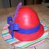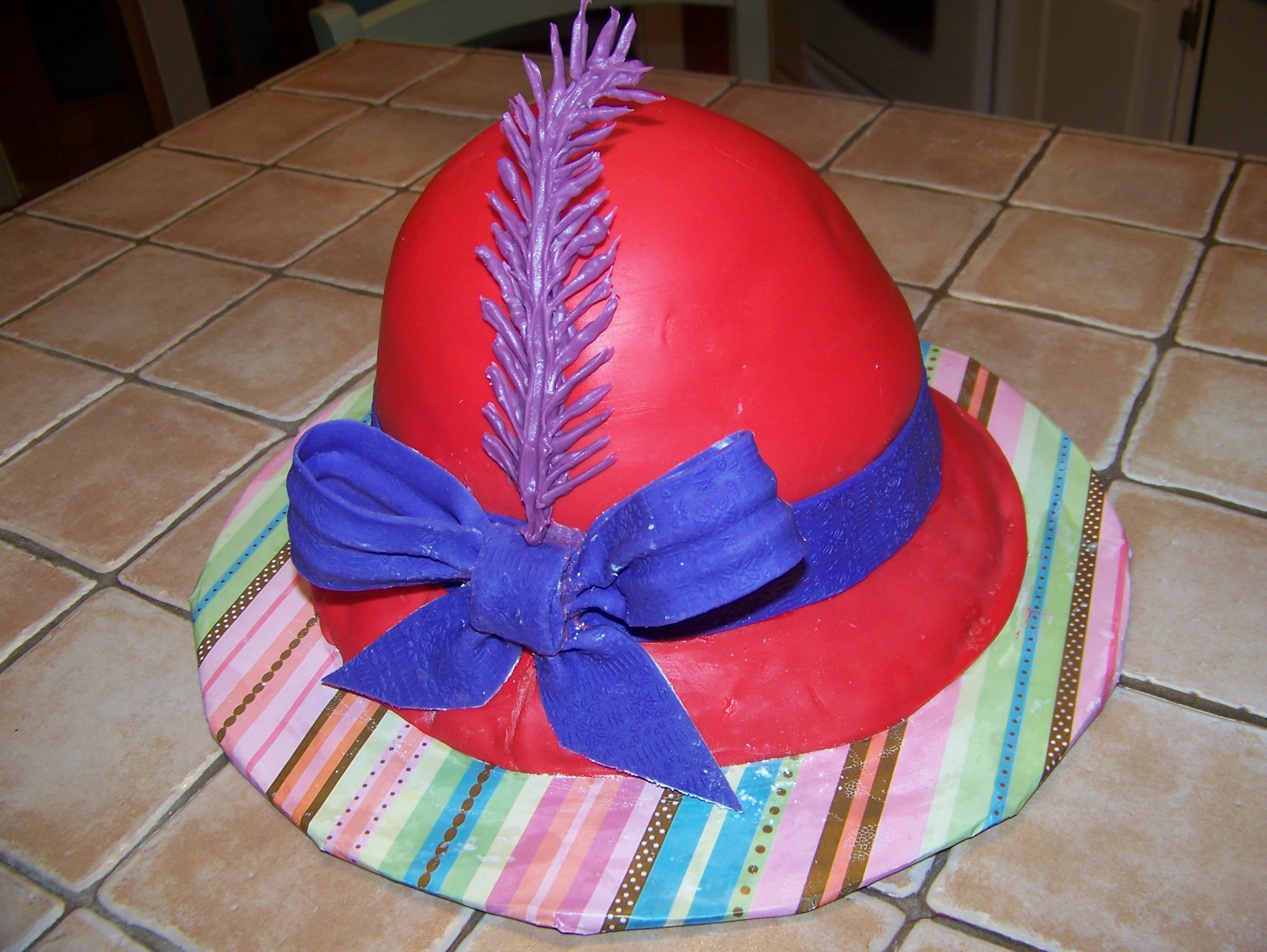 Red velvet cake with cream cheese frosting covered in fondant. The "feather" is made out of chocolate.