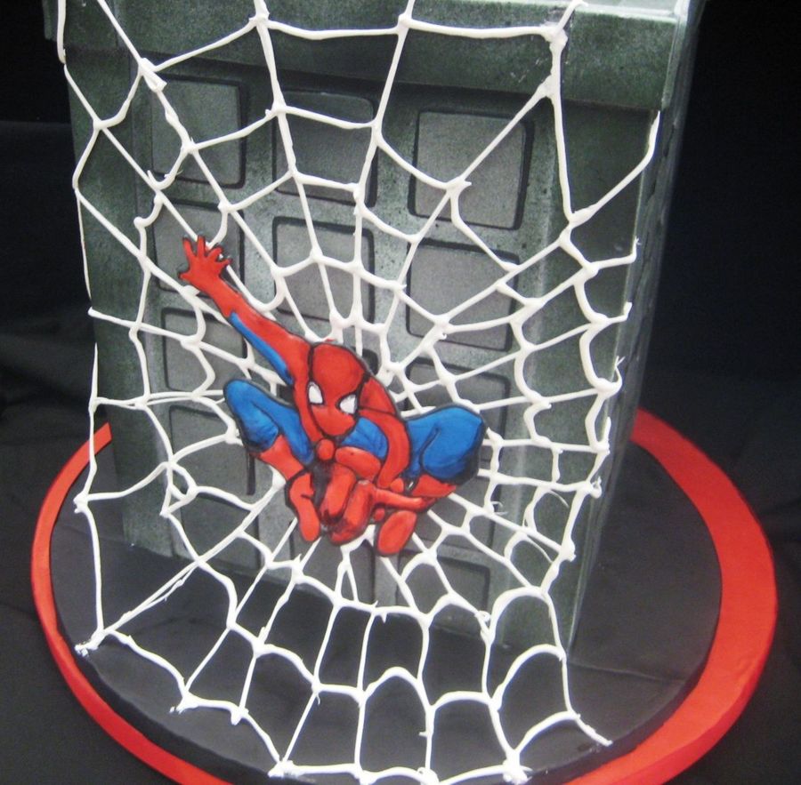 Building is 8 layers of 10 inch square stacked, covered in fondant "panels". Spiderman's web and Spiderman are made with Sugarveil. I shaded Spiderman with food coloring. Thanks for looking!