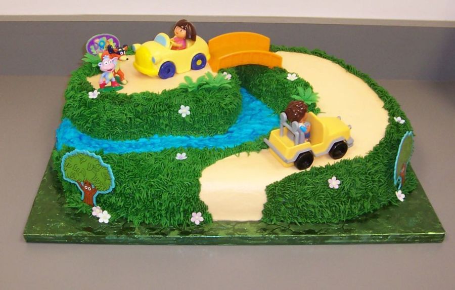 I don't make this kind of cakes but for my granddaughter is OK. This is a buttercream cake with fondant little flowers and the toys of the cake kit. Thank you for looking.