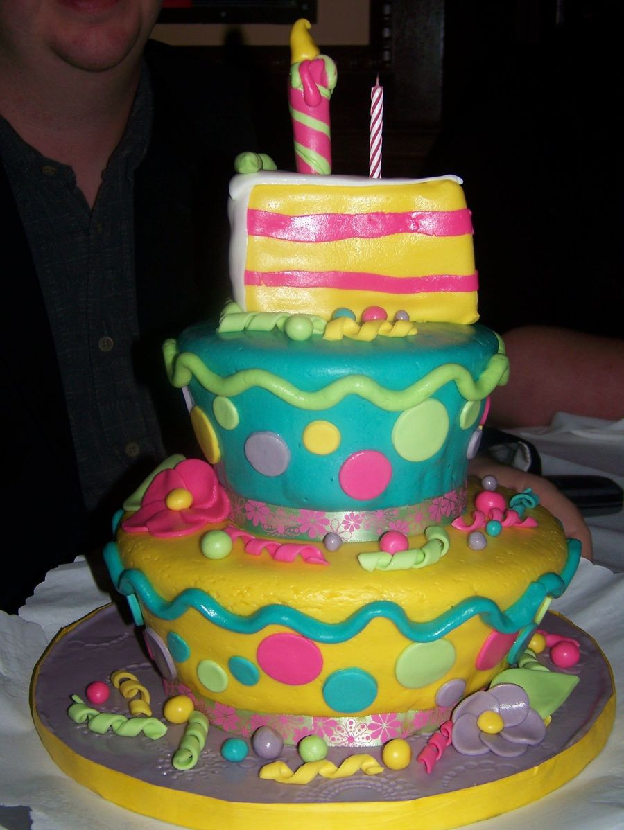 i need a bday cake for a friends bday so i just had fun!!!!! and did anything and everything i wanted it was so much fun!!!!! it was lemon cake with coconut butter cream covered in MMF i did the curls around straws