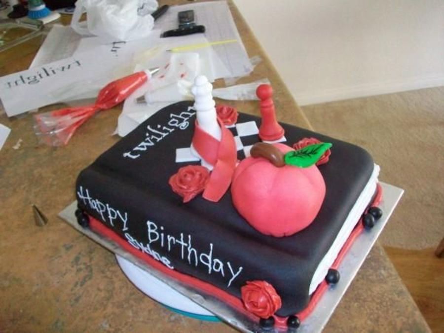 choc mm fondant with fondant accents. red velvet cake with cream cheese frosting. was so happy the way this cake turned out!