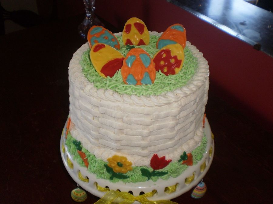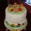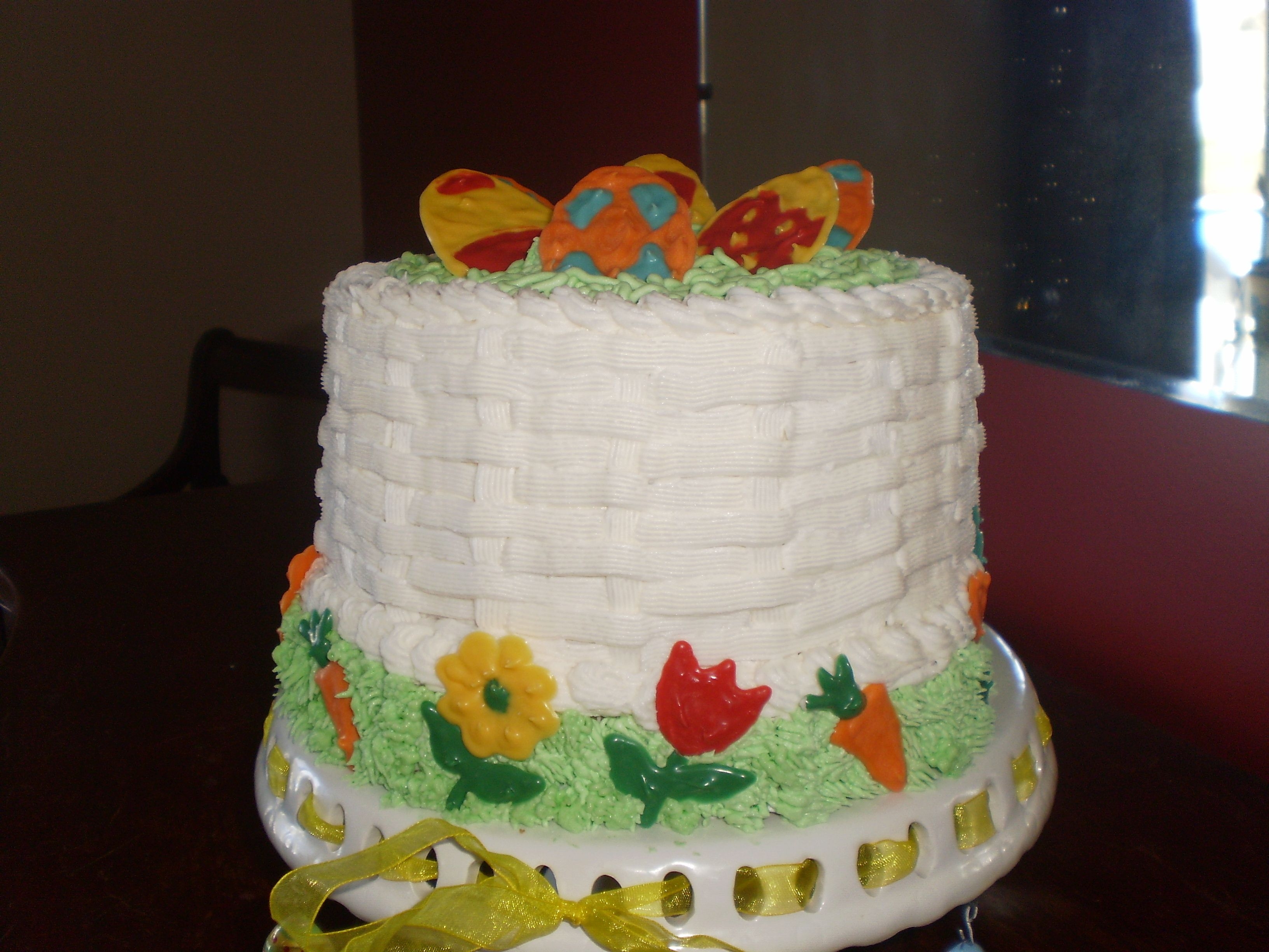 Chocolate cake with buttercream frosting. The decorations were made with Candy Melts.