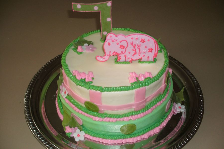 2 tiered butter cream with gum paste elephant and number 7. Based on invitations by Lilly Pulitzer.