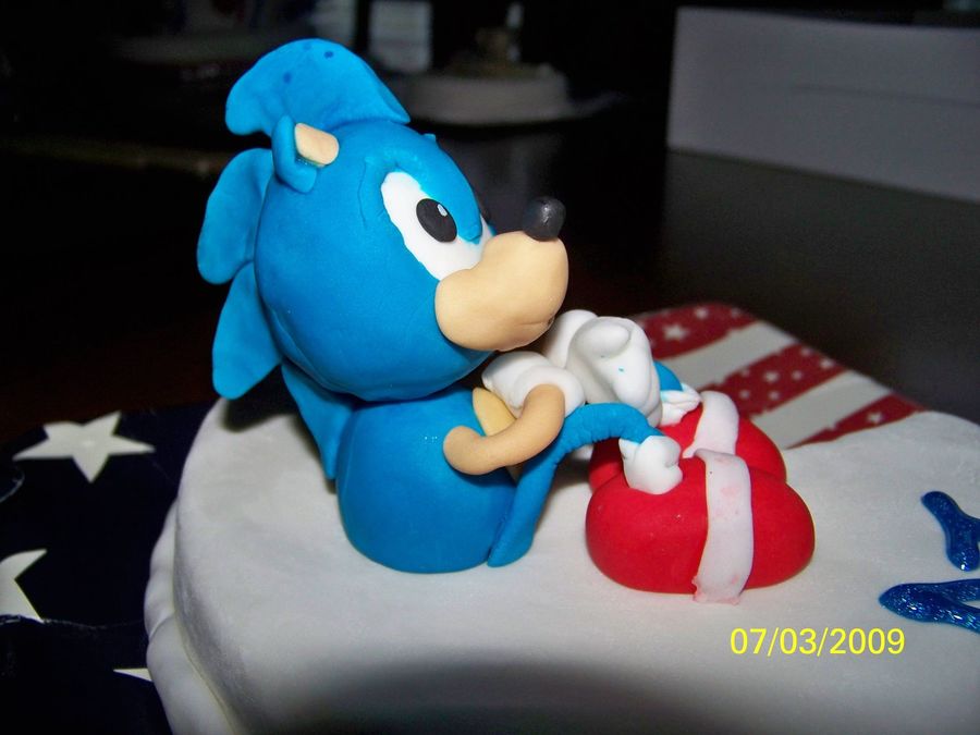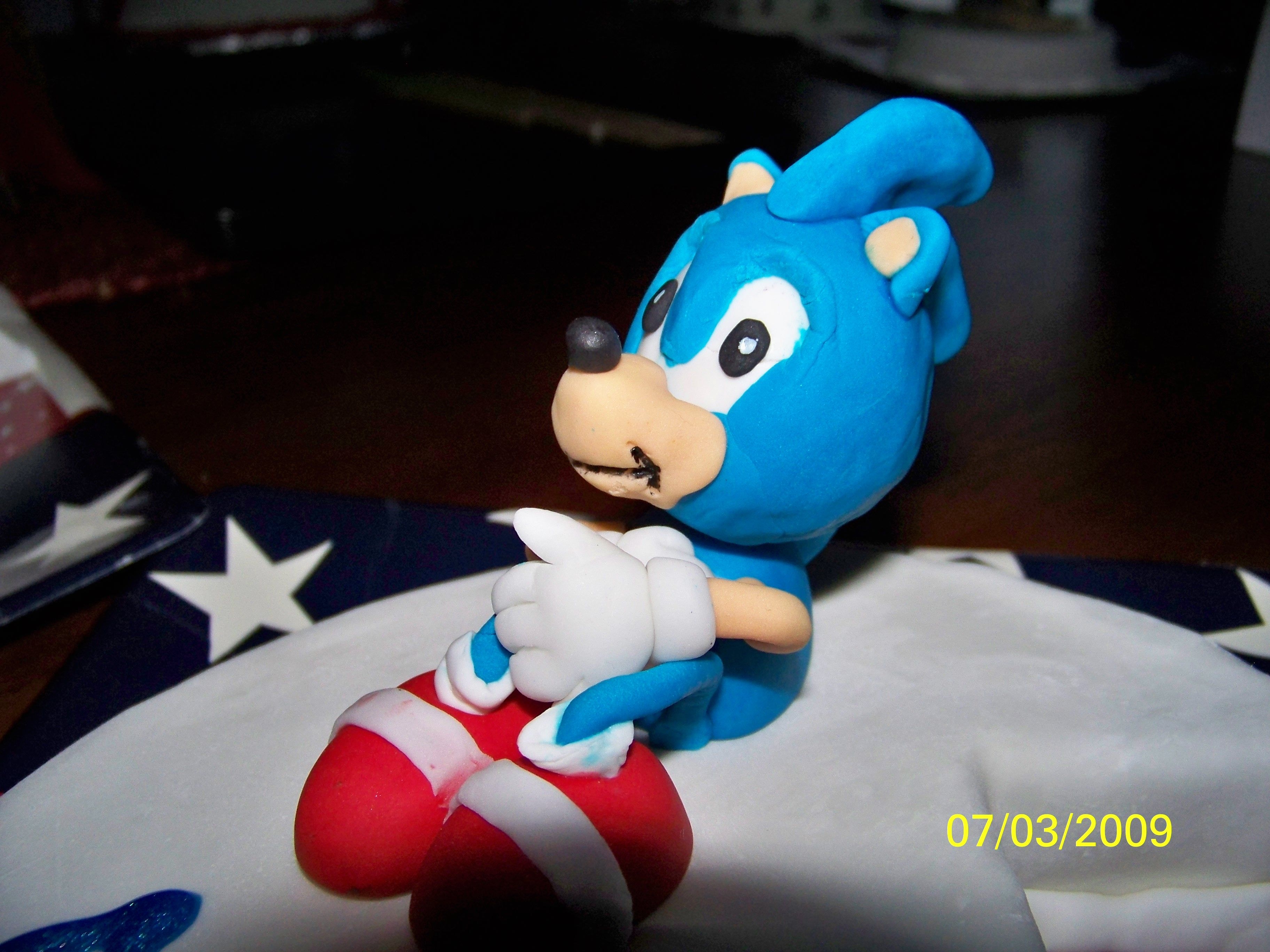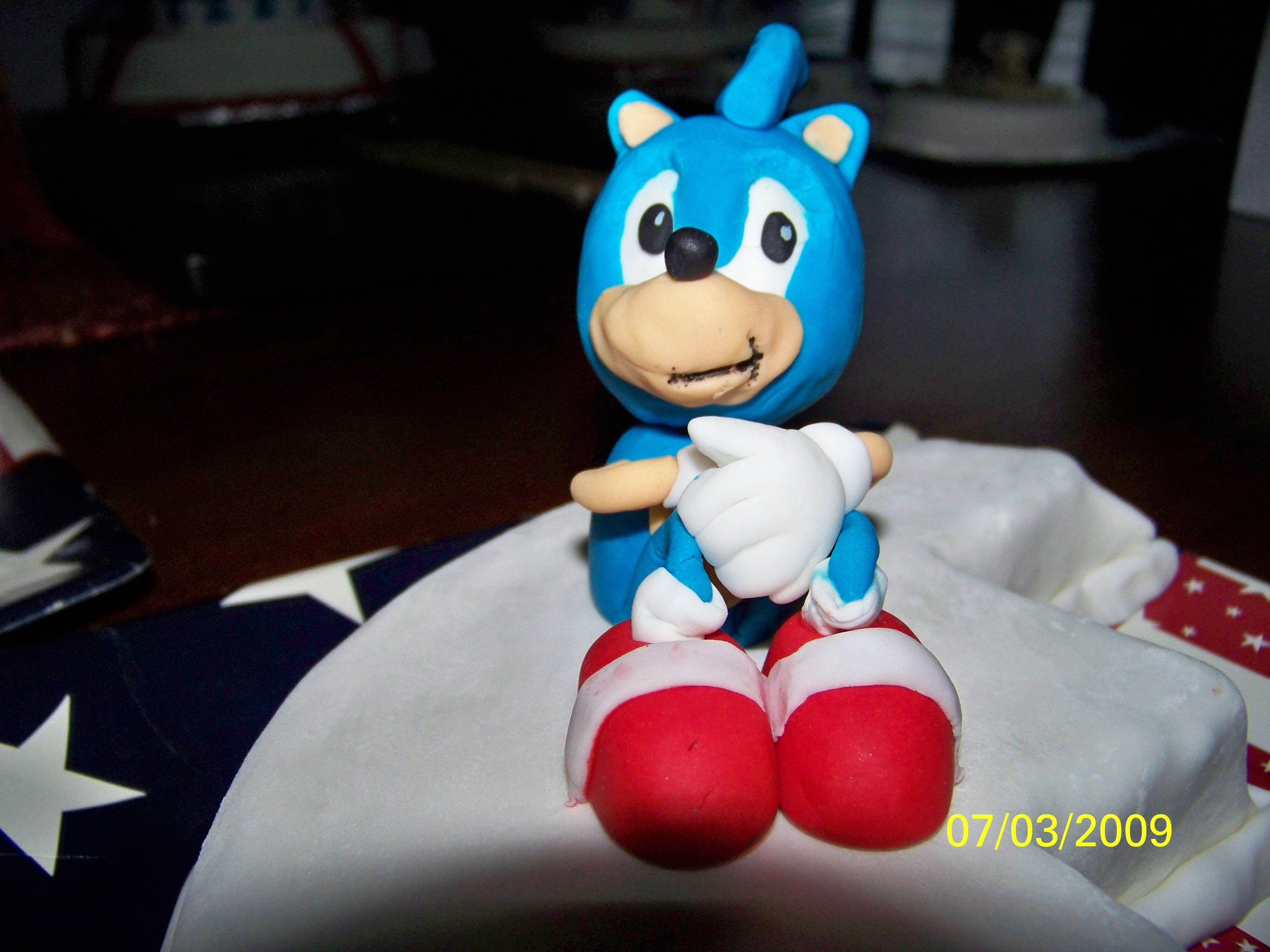 One of 4 children's birthday cakes delivered with a large Independence Day cake. This child loves Sonic. I was pretty happy with how the figure turned out.