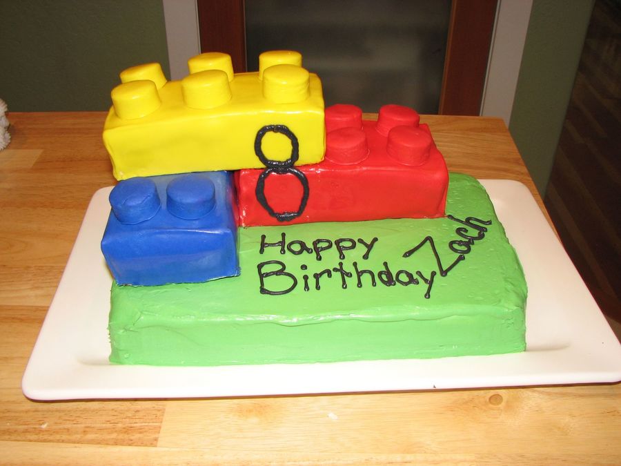 My son found a cake online that he liked and asked me to do it as well. I tried... not my best cake for sure... The legos are covered in fondont (only my second cake covered in fondont) and the bottom layer is cream cheese frosting.