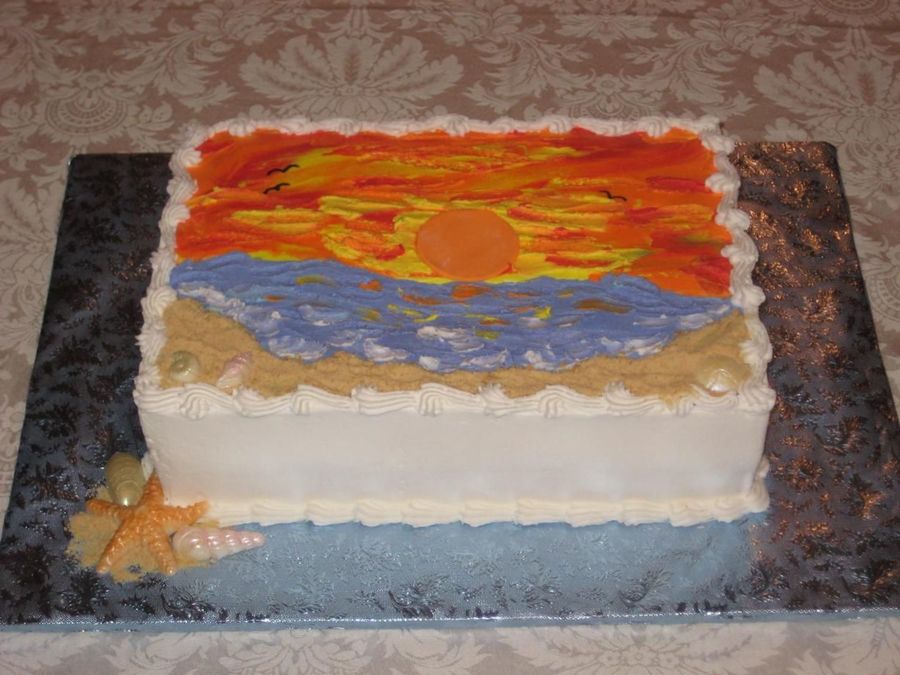 This was my surprise 40th birthday cake (that I caught wind of). I was not feeling the love with this one. It's tough to do a sunset w/ BC! And since I had to make my own cake, I would've liked to do something a little more creative! My 12 yr old told me it was the ugliest cake I've made - thanks kid! :) But we had alot of fun anyway!
