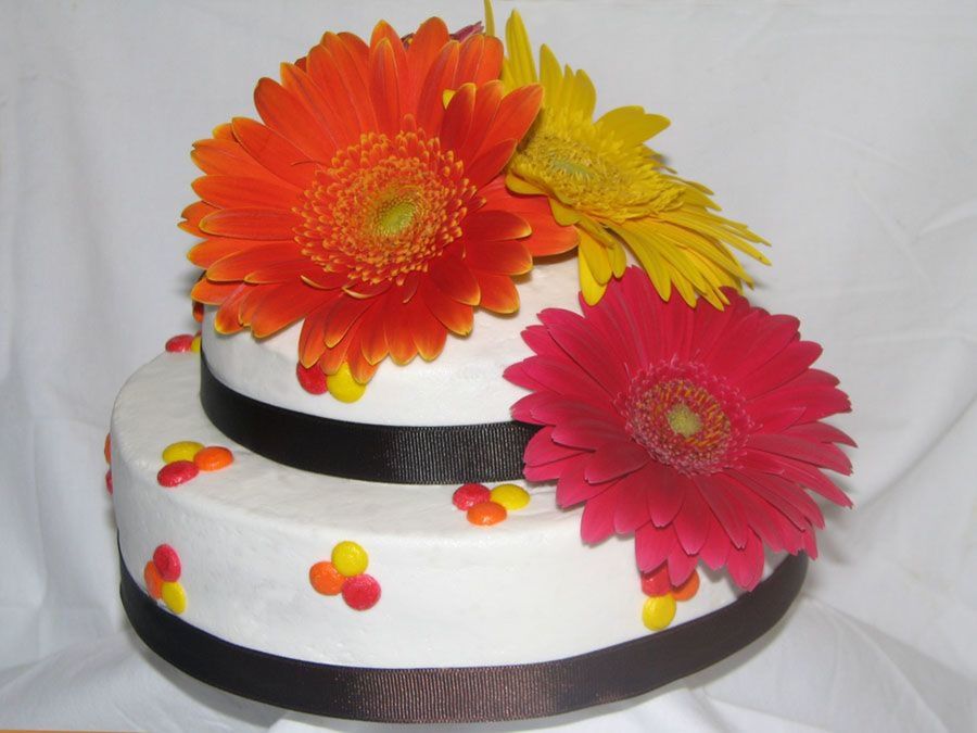 This cake was done for a couples 1st anniversary. Real daisies and the rest done with buttercream icing.