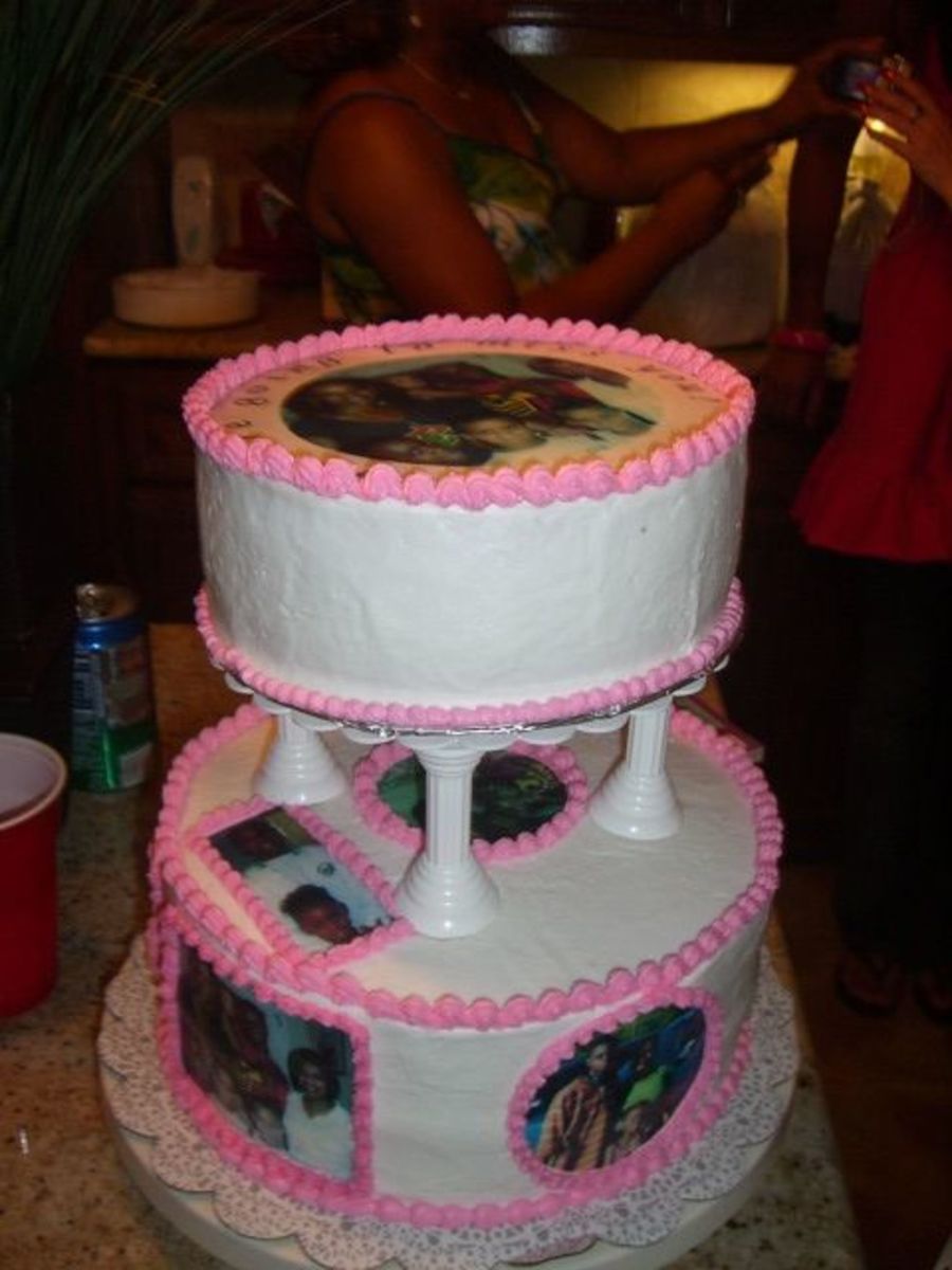 I made this cake for my friend that was going to work overseas. I put a lot of pictures of her and all the closest friends. She love it.