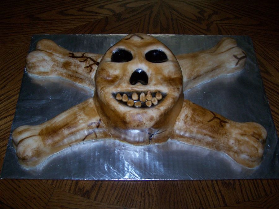 Handcarved skull covered in fondant and then painted.