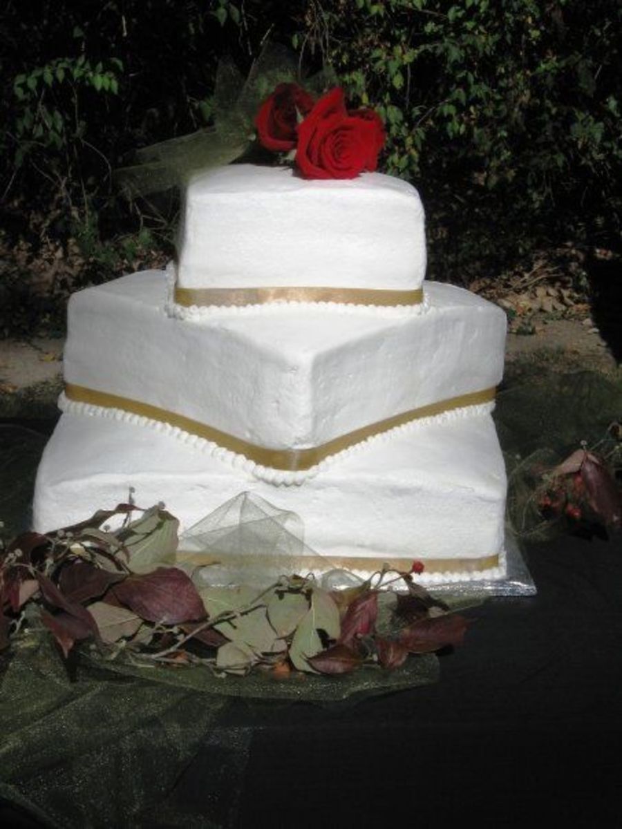 First time ever making a wedding cake...and squared cake. I've learned a lot since then (corners and leveling needs some work)....but it was a fun experience!