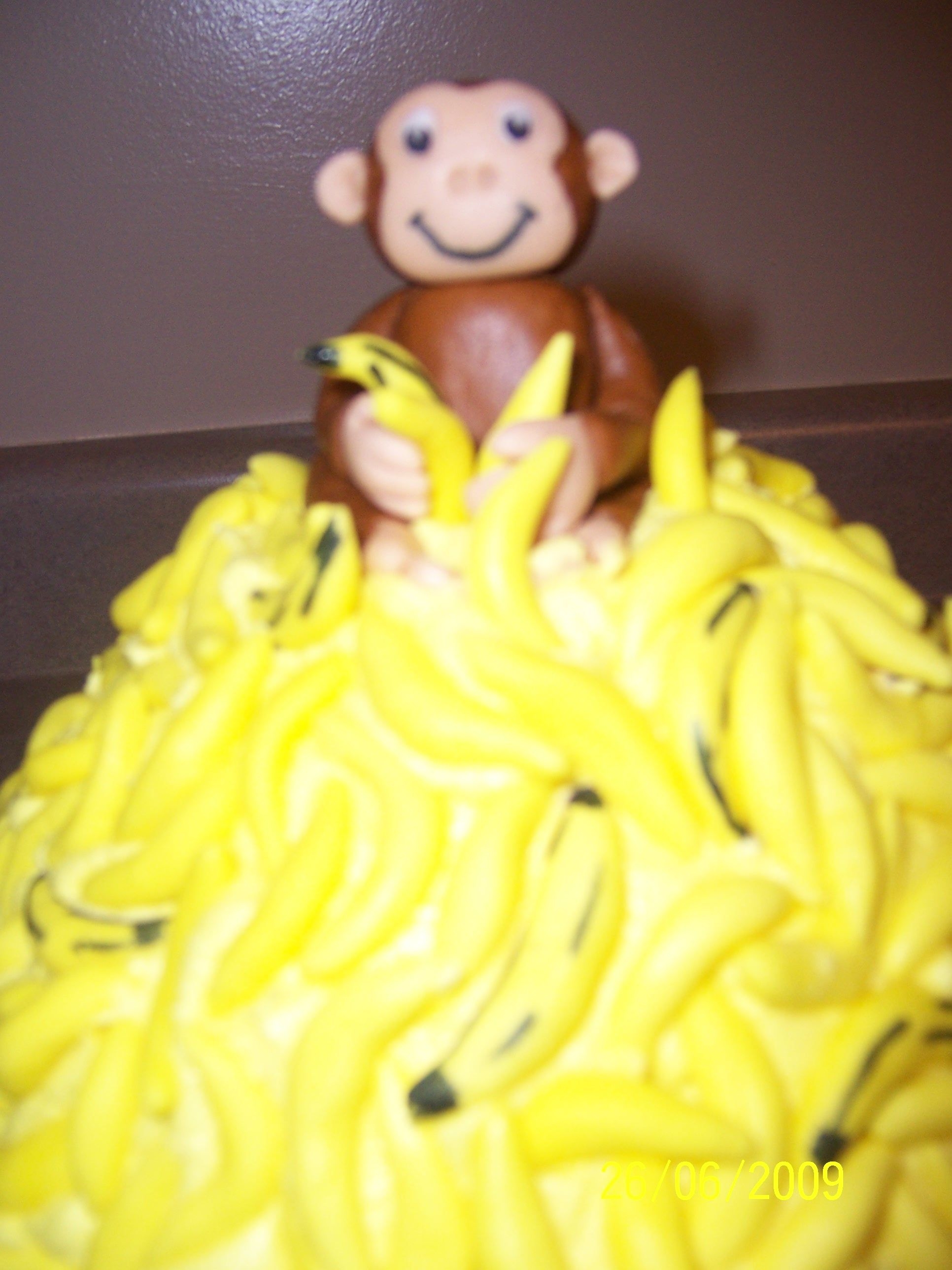 My first attempt at a fondant figure. Monkey and bananas are MMF. Inspired by all similiar cakes on CC especially bmote1.