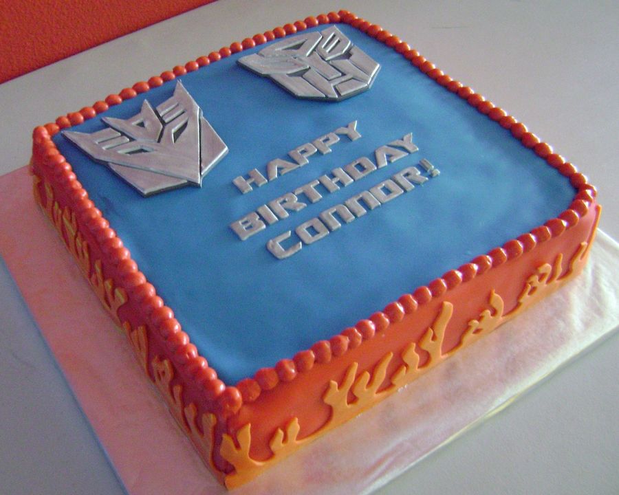 Transformers birthday cake with space for 4 small toys on the top.