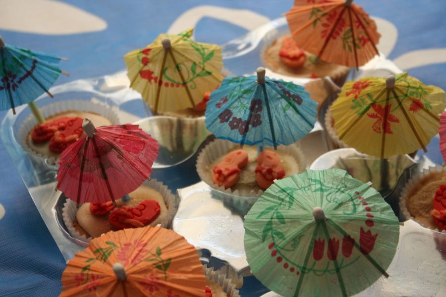 fondant flipflops on top of royal icing and soft brown sugar