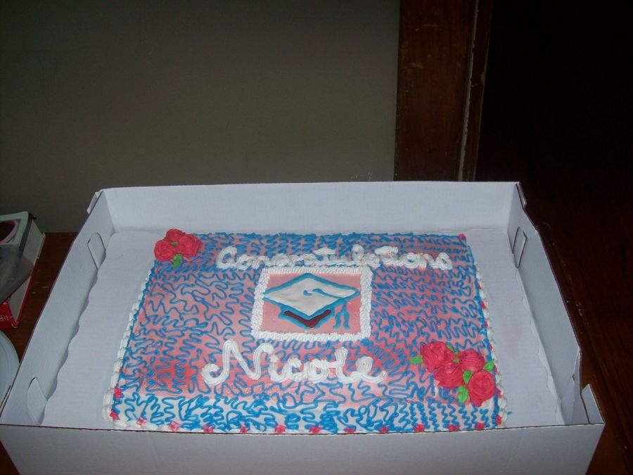 Lemon cake with cherry filling, butter cream icing, and cap is made with color flow