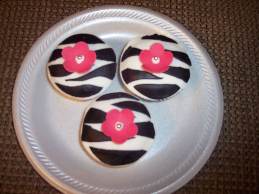 Chocolate cupcakes with rolled buttercream. Zebra stripes are fondant and flowers are fondant/gumpaste. These were for my daughter's birthday!
