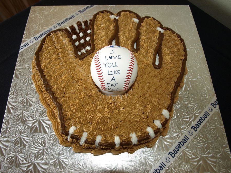 red velvet, the baseball in the center has "I love you like a fat kid loves cake" written by the Bride.