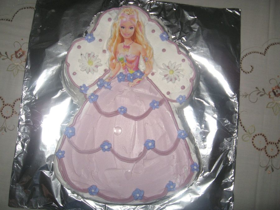 An older barbie cake pan that had no insert, so a friend of mine laminated a picture of barbie and I used it with the pan. Worked out fine
