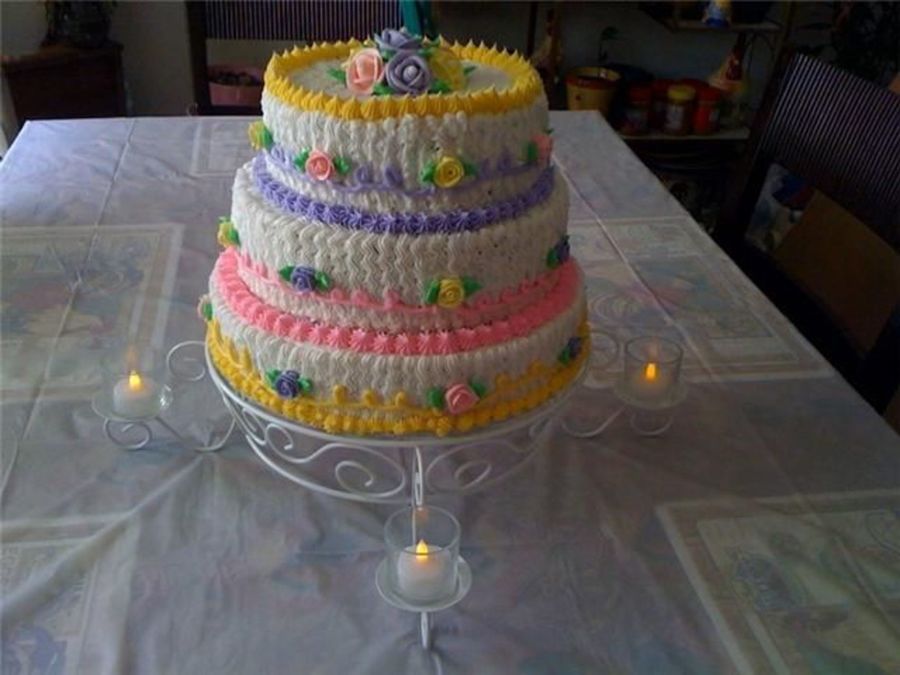 This is a three tier birthday cake that I made for my aunt's birthday party.