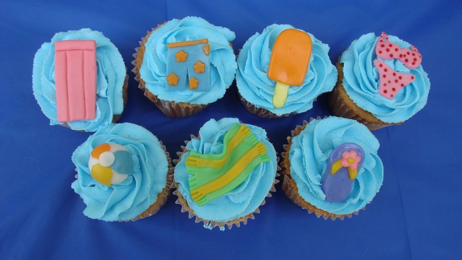 These cupcakes were done for 6 year old twins having a pool party. PatrysV inspired me with her great cupcakes! These were the bottom two tiers and had a pool theme cake on top. Other pics on CC also.