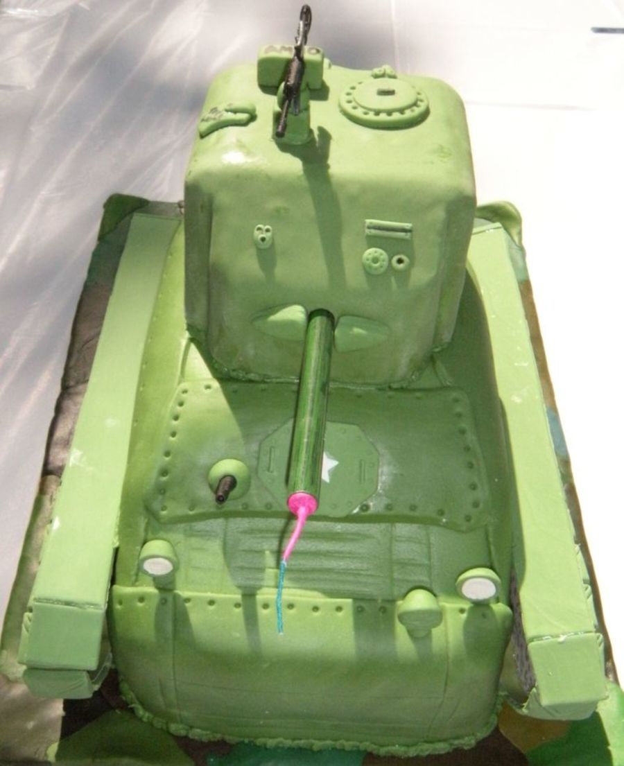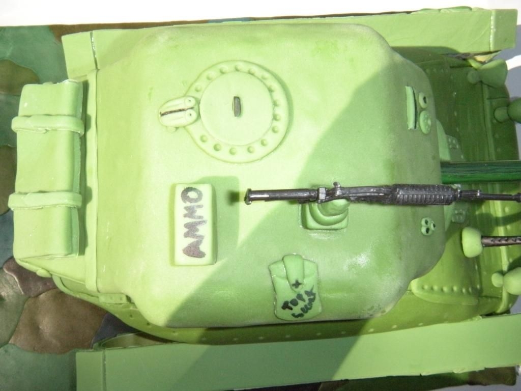 Mostly fondand and gum paste. Turret is carved styrofoam. The large gun had a real mini fountain firework in it which we lit instead of candles.