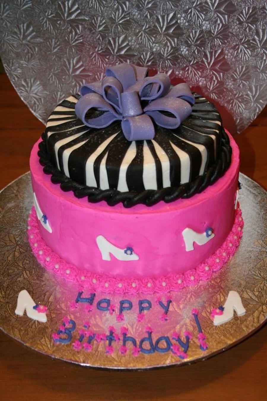 This is a buttercream iced cake with fondant accents