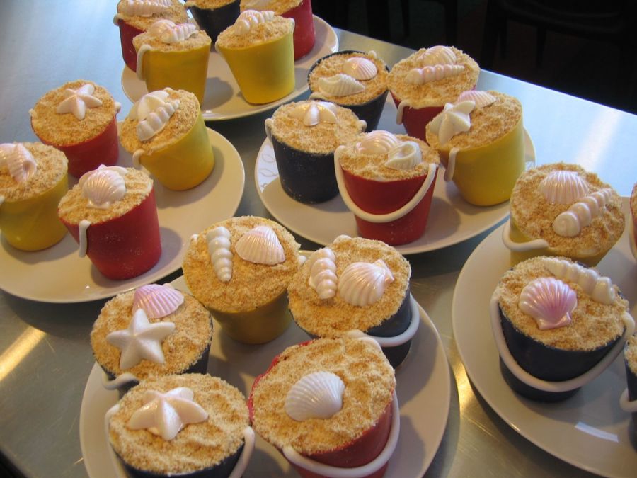Cookies and Cream cupcakes in a candy shell bucket. Nilla wafer sand and chocolate shells. Everything is edible.