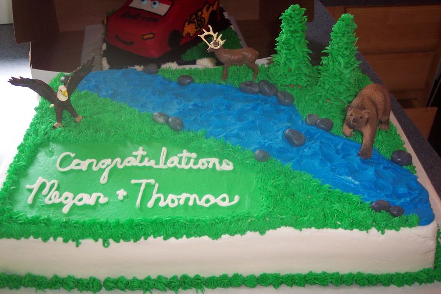 For a college Grad who was going into enviromental major. and for his girlfriend who just recently graduated. 1/2 white with bavarian cream and chocolate with chocolate buttercream