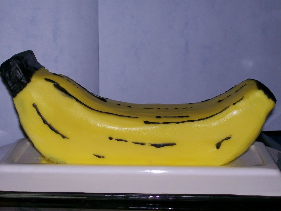 First 'dummy cake' (using foam underneath to practice icing), will use banana cake next time :)
