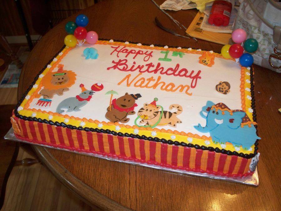 I did this for a friends sons first birthday. They gave me a picture of the invitation and I copied it the best I could. The animals are fondant the animal faces are sugar edibles that I bought.