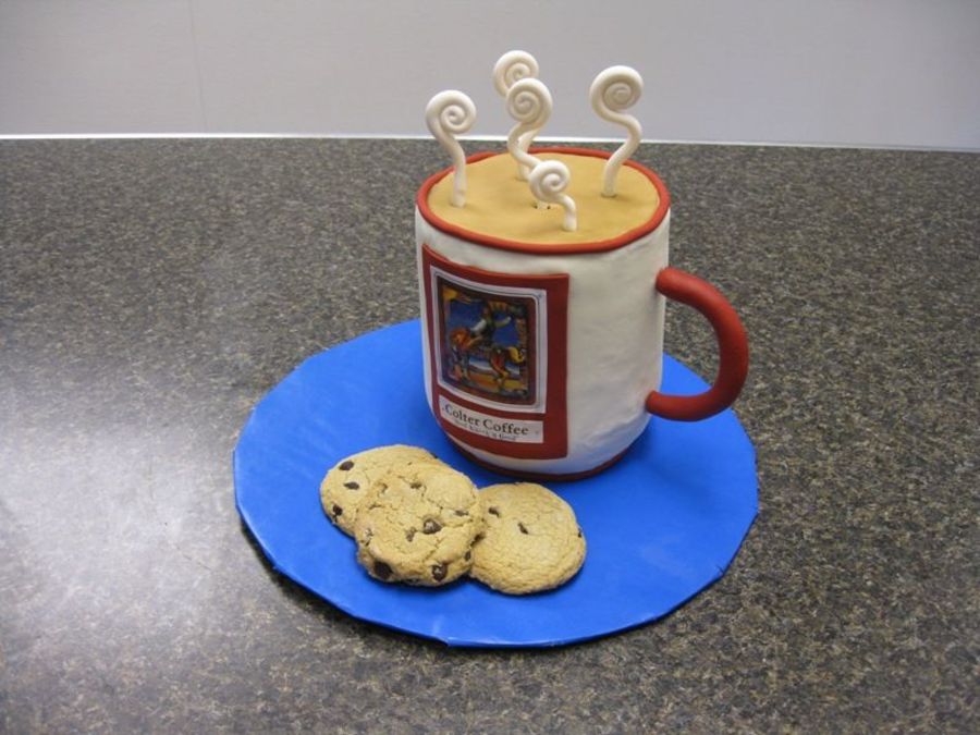 This cake gave me more trouble than I care to remember but the client was thrilled. Only we can see each and every flaw I guess :). Chocolate cake with espresso cream filling and vanilla BC. Logo is edible image on fondant and handle and steam are gumpaste. Thanks for looking!