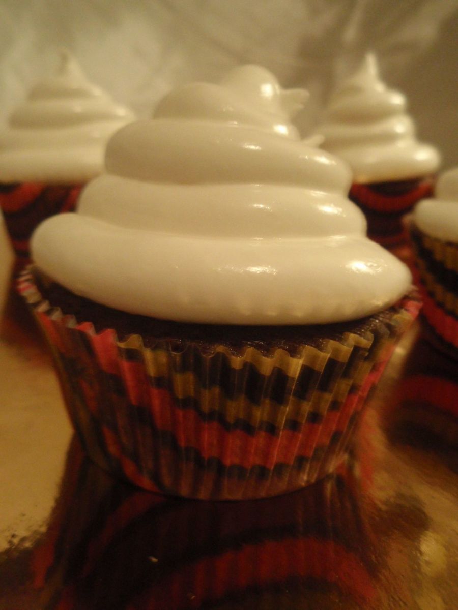 chocolate cupcake filled whit chocolate cream and whit fluffy white frosting