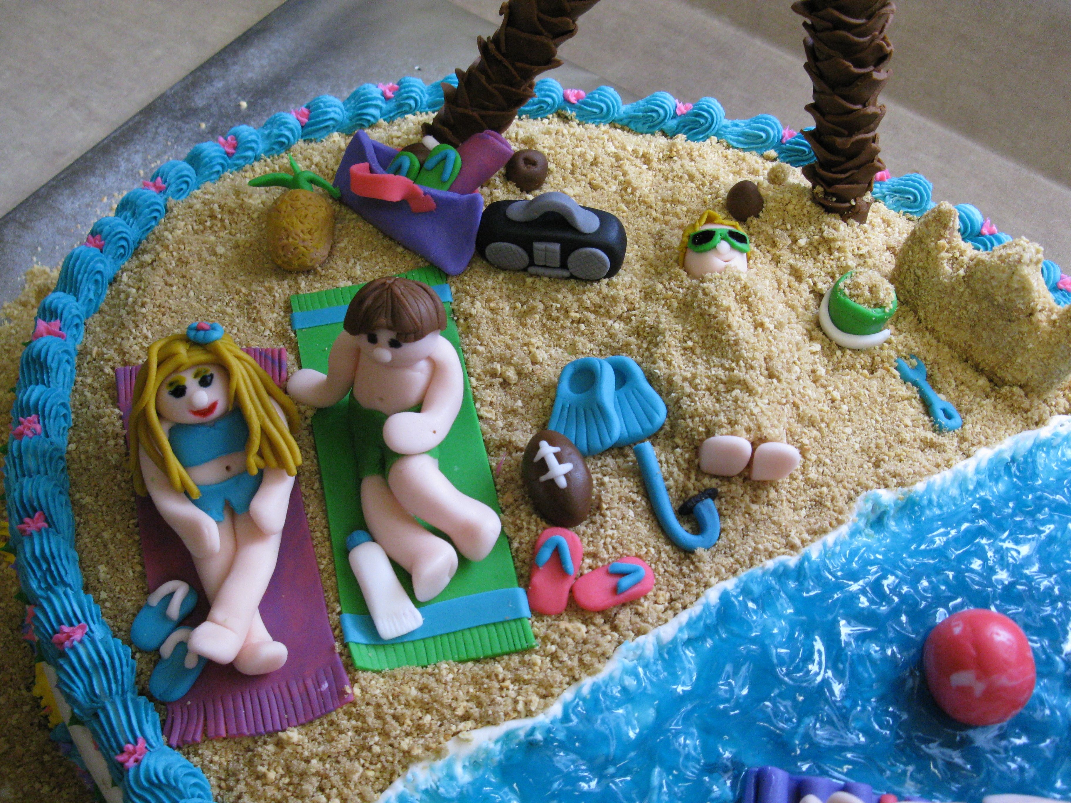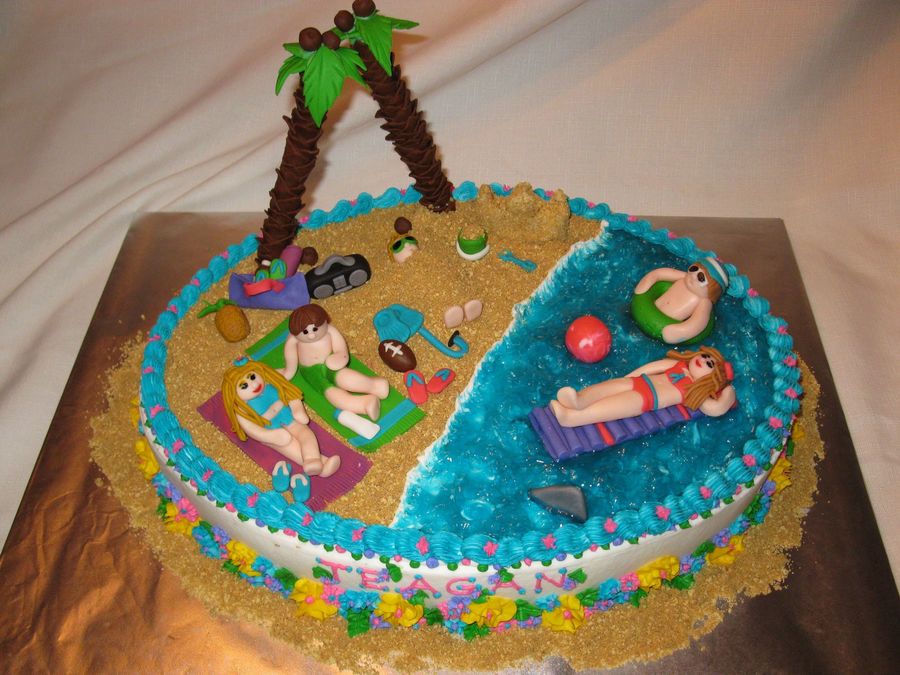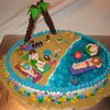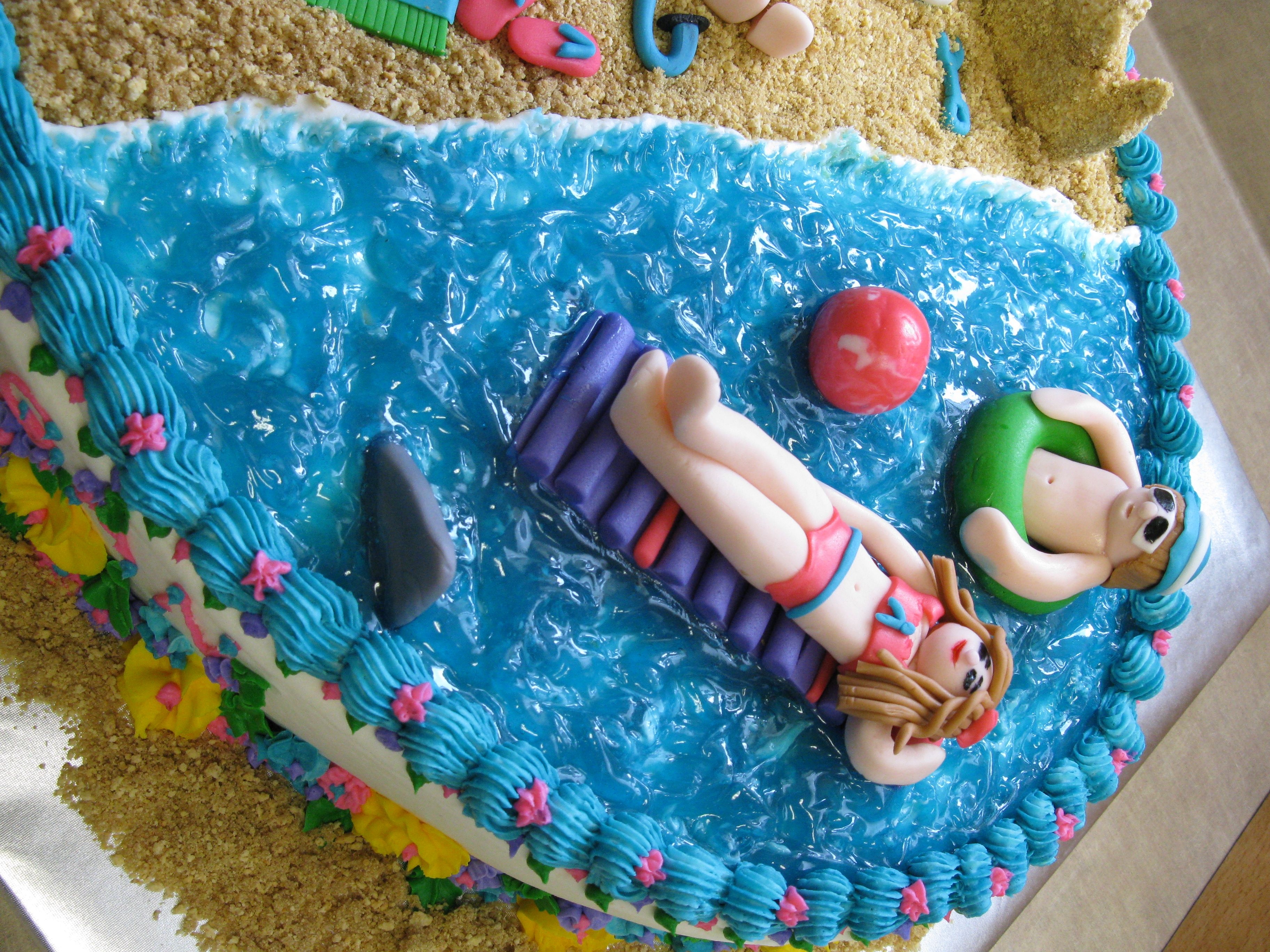 White cake with chocolate pudding filling iced in bc with fondant accents. The water is piping gel.