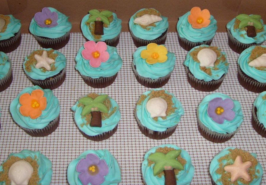These match my luau graduation cake. Brown sugar "sand" and fondant shells, palm trees, and flowers.