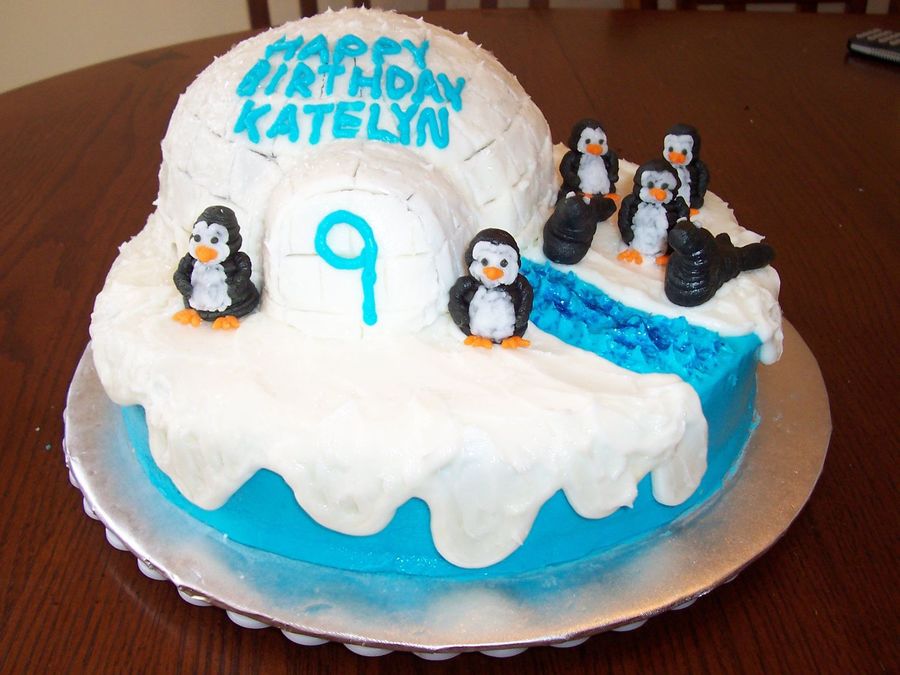 all buttercream icing, including the penguins and seals. igloo made from 1/2 sports ball pan and a cupcake for the entrance.