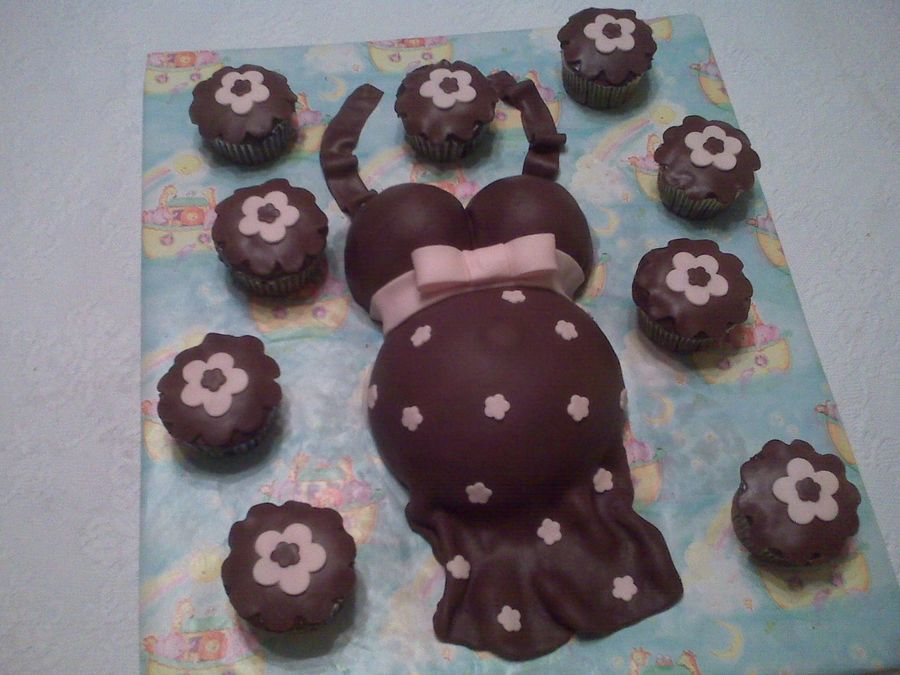 Dark chocolate cake covered in Chocopan fondant. Cupcakes are also chocolate covered in chocopan. I know this has been done so many times before, but I just think these cakes are sooooo cute.