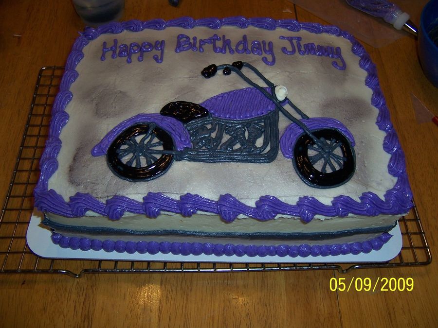 The customer's husband owns a motorcycle and wanted it on his birthday cake. Yellow cake with buttercream icing. TFL.