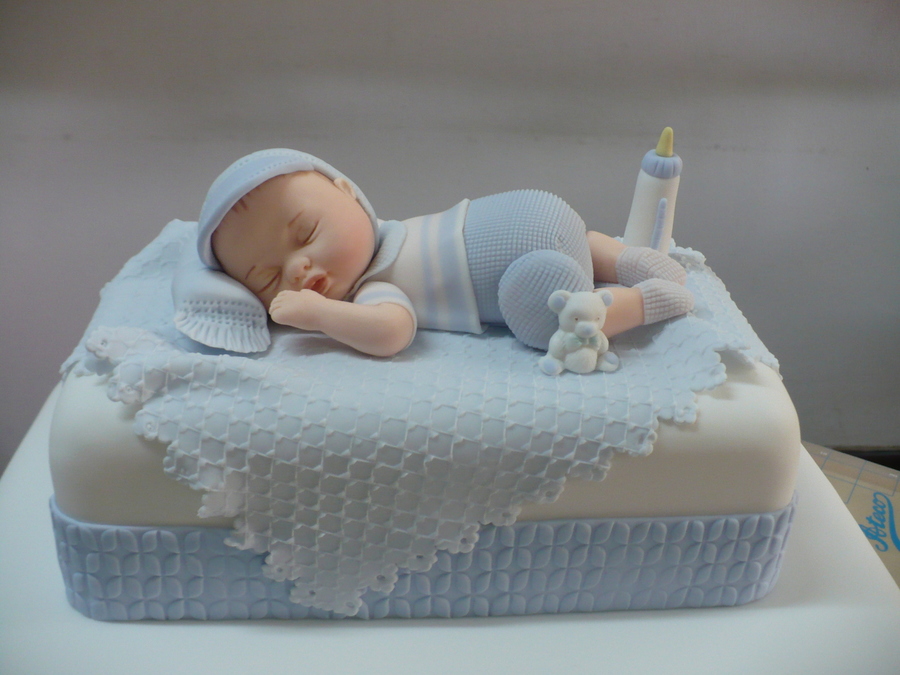 the baby was make in gum paste. Only the face was make with mold. We made the baby and other molds,