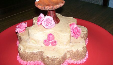 Just a quick practice cake, i didnt have a board to match colour scheme or shape so used upside down plate :)