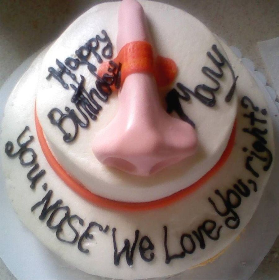 A friend called in the morning for this cake for lunch... ARGH! With friends like these... LOL! Her sister just had surgery (not cosmetic)--but, she had been picking on her about having a nose job! LOL! Nose is fondant...