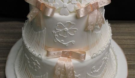 White On White Wedding Cake With Stringwork