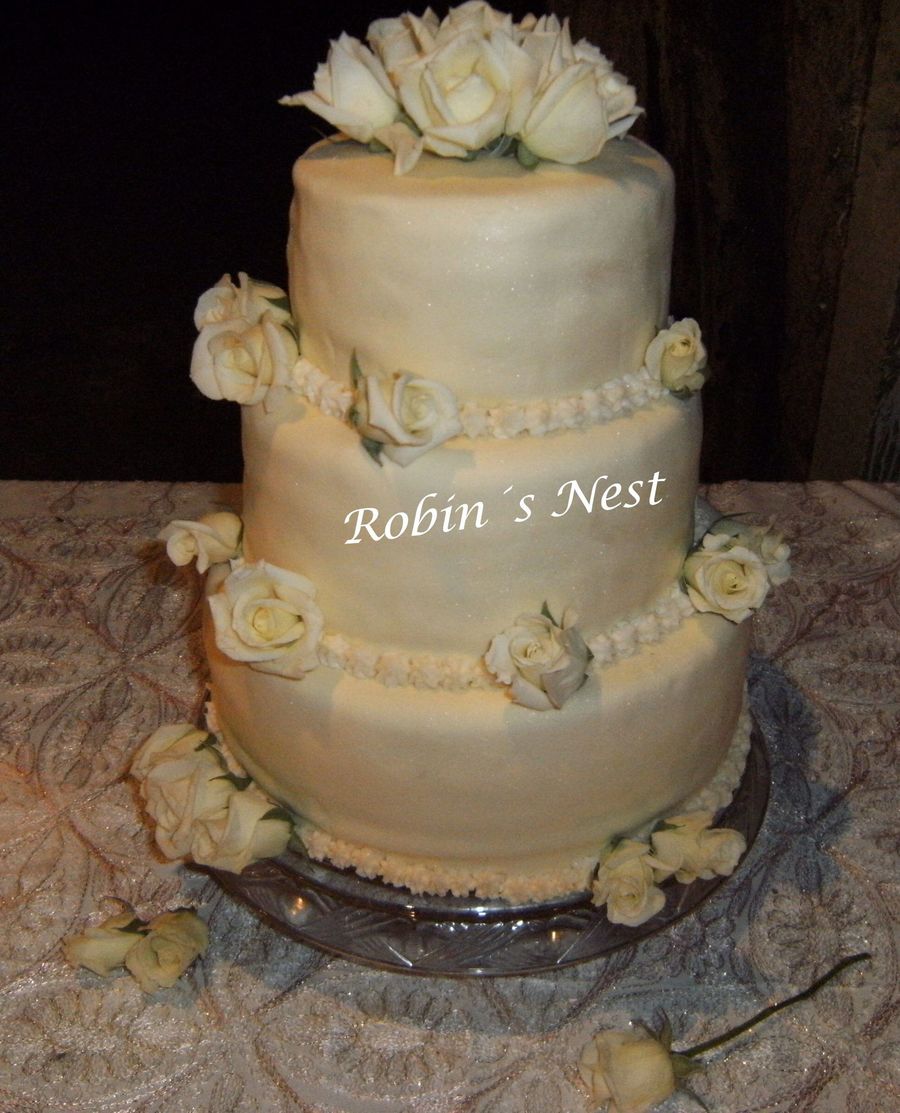 Vanilla cake with rasperry, dulce de leche and white chocolate filling fondant decor and real roses