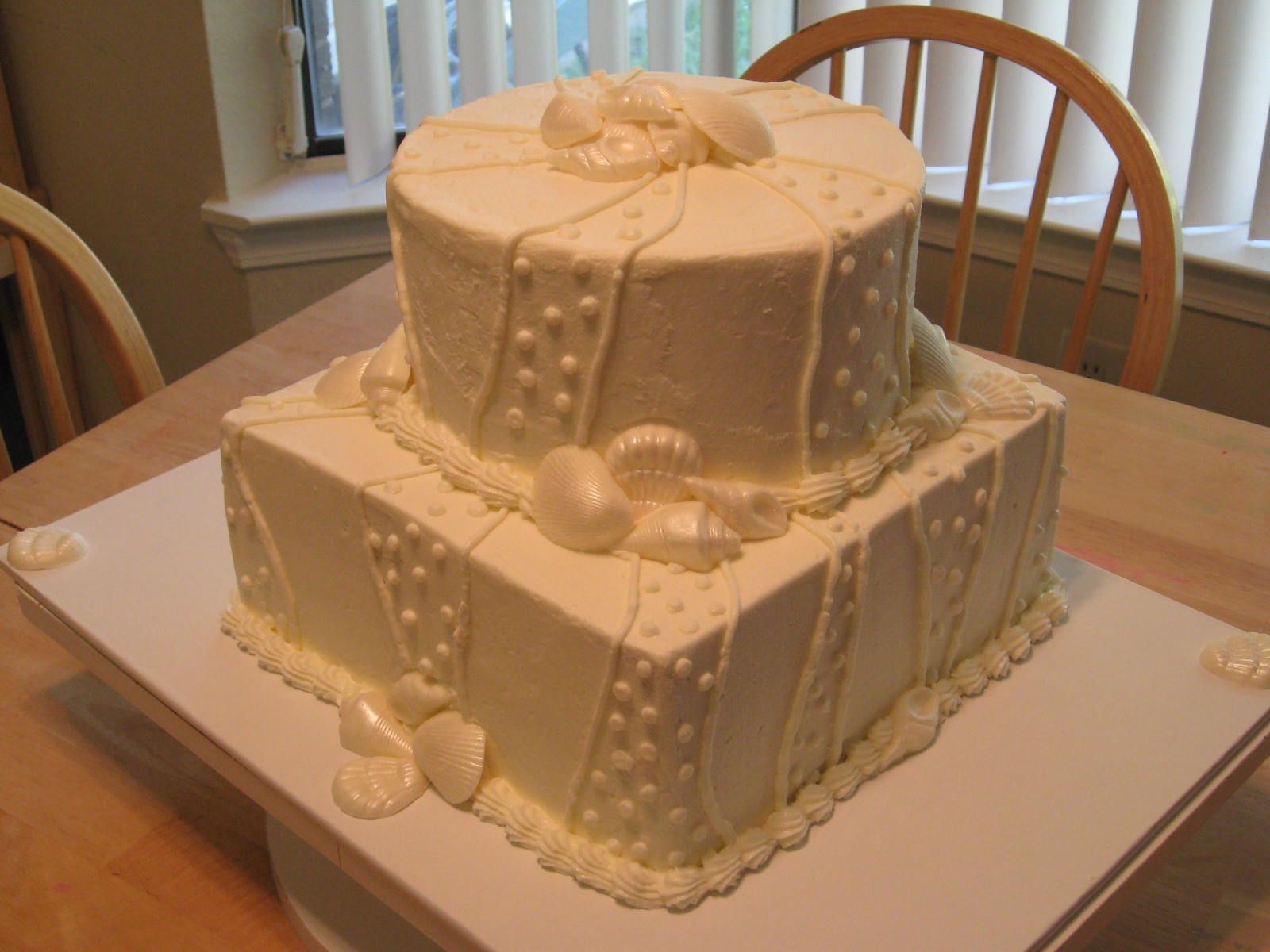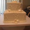 10 inch square white with fresh strawberry filling. 8 inch round chocolate with peanutbutter BC filling. Covered in BC and white chocolate shells with pearl dust. Original design by mjs4492.