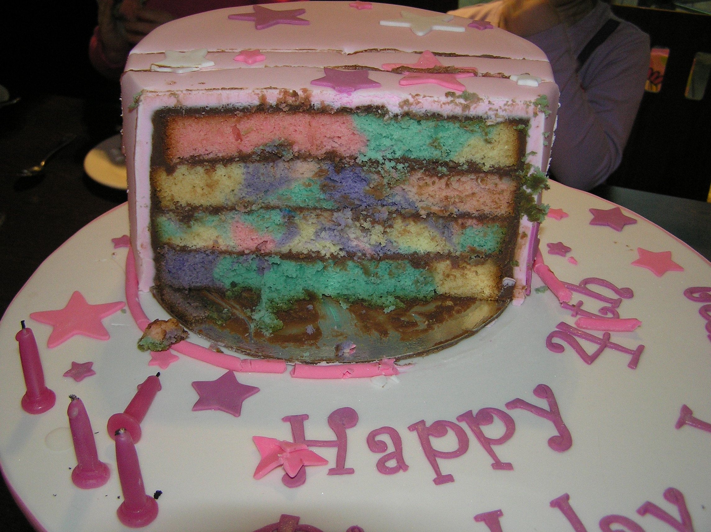White chocolate mud cake covered with ganache & fondant. Angelina's body carved from polystyrene & covered with fondant. Arms and legs are bamboo skewers covered with fondant. Stoked with how she worked out.