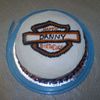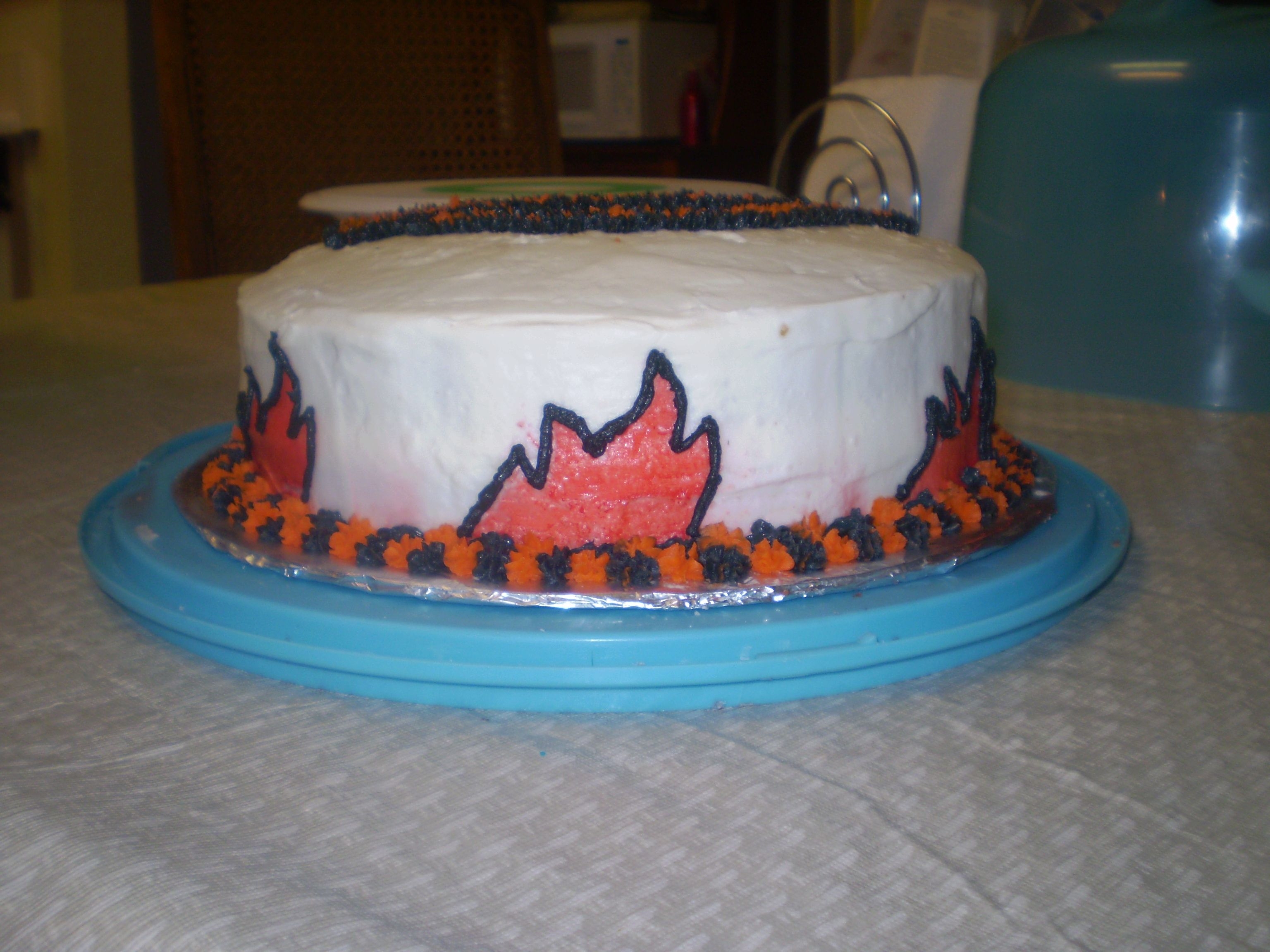 9 inch cake iced with buttercream. piped stars for the emblem and used spray mist for the flames on the side.