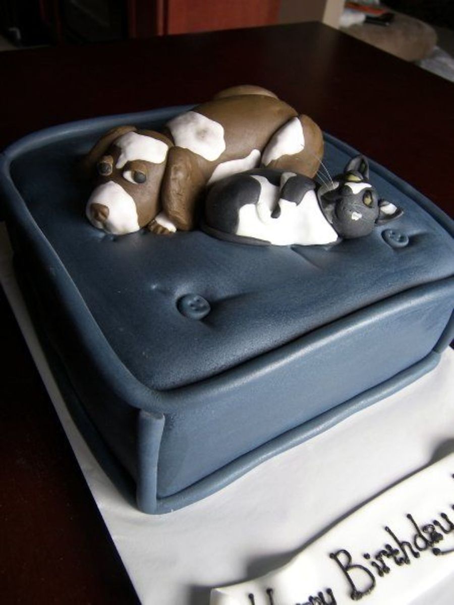 A friend wanted this cake made of her dog and cat who don't like one another. I made sure they were glaring at one another. :)