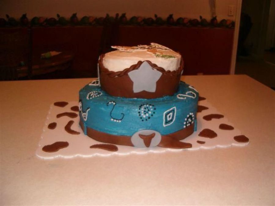 b/c with choc mm fondant belt, buckle, cow spots, color flow icing print on top