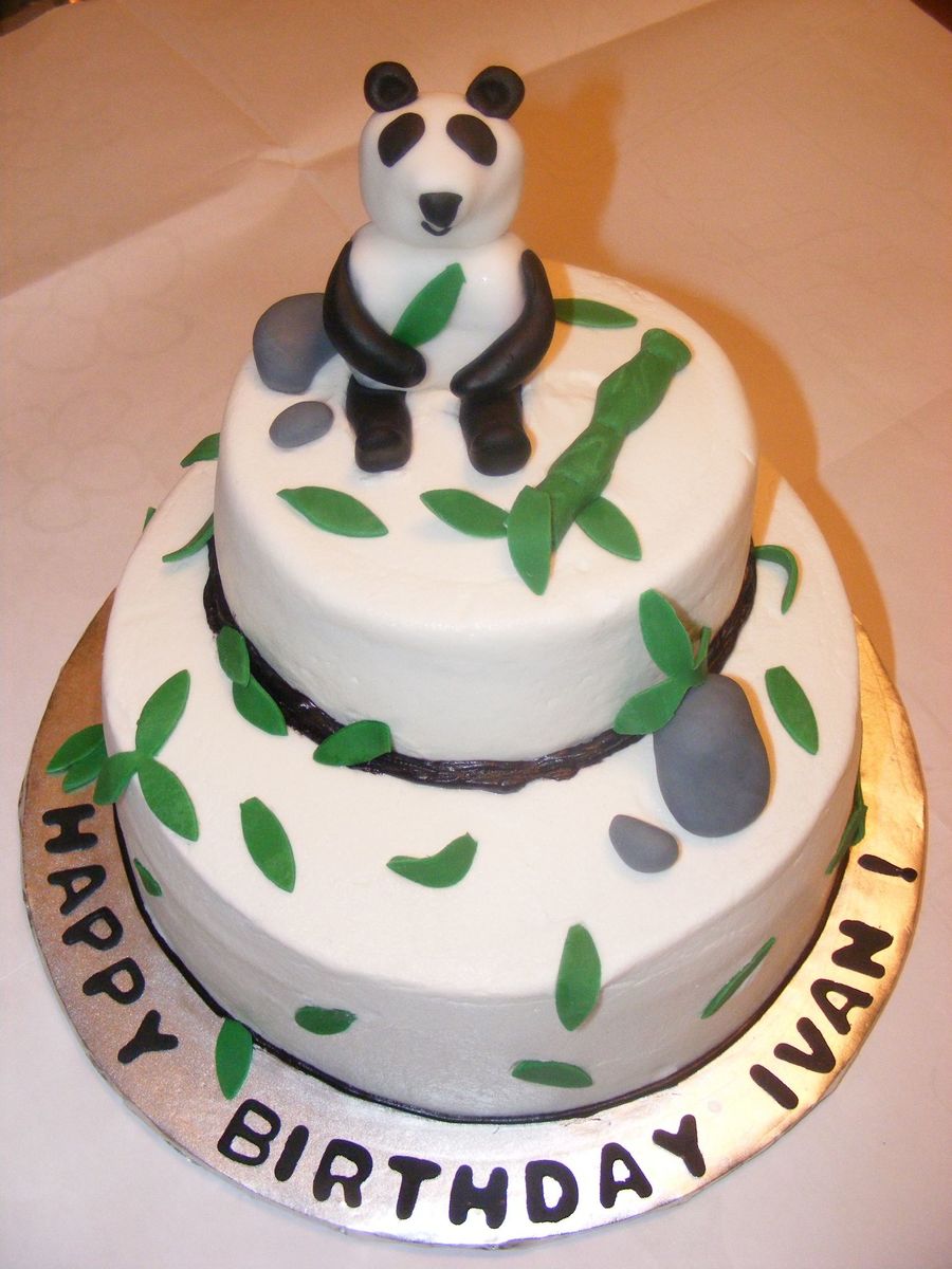 Buttercream iced, fondant panda/bamboo/leaves/rocks/lettering