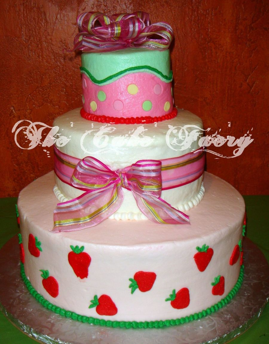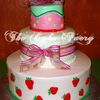 I cake I made for my god-daughters babyshower. She wanted a strawberry shortcake themed cake, but elegant. So this is what I came up with. Top layer is Triple Fudge cake w/fudge filling, Middle is French Vanilla w/cream filling w/fresh sliced strawberries, & bottom layer was strawberry cake w/plain cream filling.